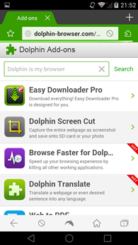 Du côté des applications, là aussi, c'est service minimum. Seules deux sont préinstallées en plus de la suite de Google, évidemment complète : Rescue, pour l'assistance à distance avec un technicien capable de prendre le contrôle pour vous sortir d'une mauvaise passe, et Dolphin Browser, un navigateur internet aux faux airs de couteau suisse avec ses add-ons et son AppBox qui renvoit en fait vers le Play Store pour télécharger des applications. Soulignons au passage que vous disposerez pour cela d'environ 12 Go sur les 16 annoncés, sans oublier l'emplacement pour cartes microSD.