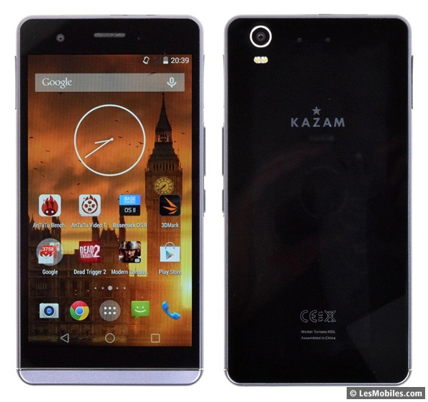 Arrivé en 2013, et 2014 chez nous, Kazam fait partie des petits nouveaux sur le marché de la téléphonie mobile. Il n'est donc pas étonnant qu'il se cherche un peu et tente de nouvelles choses, d'autant qu'il n'a pas grand chose à perdre. Et heureusement d'ailleurs, quand on pense au Tornado 455L. Présenté comme le premier smartphone étanche grand public de la marque au dernier Mobile World Congress, c'est finalement avec l'étiquette « splashproof » qu'il s'apprête aujourd'hui à arriver dans le commerce au prix public conseillé de 329 ?.