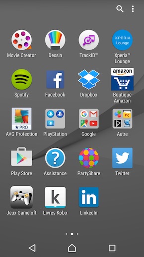 Comme avec le Z5 Compact, les applications de Sony sont toujours préinstallées en grand nombre. Ce qui pèse lourd sur le système. Mais certaines peuvent être supprimées, même parmi celles du fabricant. Peut-être, dans ce cas précis, la stratégie de Samsung est-elle meilleure ? Le Coréen a décidé d'enlever les applications préinstallées pour mieux les proposer via Samsung Apps. Pourquoi Sony ne propose-t-il pas la même chose avec What?s New ? D'autant que certaines applications ne se mettront à jour que par son biais. L'utilisateur devra donc obligatoirement se familiariser avec. Twitter, Facebook, LinkedIn et quelques autres partenaires sont toujours présents. La grande majorité peut être supprimée. Nous aurions bien aimé que Movie Creator et Xperia Lounge le soient aussi. Nous nous contenterons déjà de cette avancée.