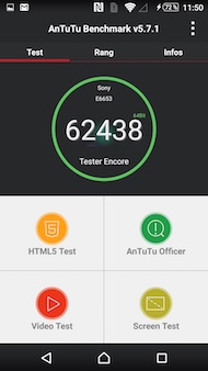 Seconde bonne nouvelle, les performances de la plate-forme sont également très bonnes. Avec AnTuTu, nous avons largement dépassé les 60 000 points. Nous sommes bien loin des timides 53 000 points du Z3+. Nous ne sommes pas arrivés au point du Z5 Compact et ses 66 500 points. Mais le score du Z5 est très honorable : 62 400 points. Il dépasse le OnePlus 2, le One M9 et le Z3+. Sur Basemark OS II, il se révèle tout aussi bon, puisque le smartphone dépasse les 1700 points et devient l'un des meilleurs parmi les mobiles testés dans nos colonnes. En réalisant des comparatifs avec les meilleurs du genre dans cet exercice (comme le Galaxy S6 ou l'iPhone 6S), il s'avère que les Sony ont un problème au niveau de l'accès à la mémoire (certainement la RAM).