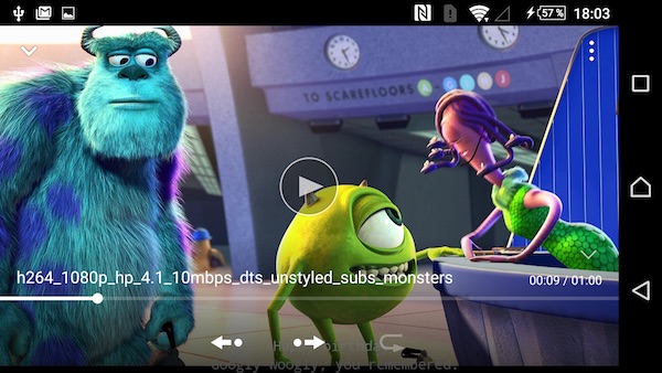 En vidéo, aucune surprise puisqu'il s'agit du même lecteur que le Xperia Z5 Compact, lequel est nativement compatible avec une large gamme de formats de fichiers, support des sous-titres inclus. Les haut-parleurs frontaux montrent ici leur véritable utilité, notamment si vous regardez une séquence à plusieurs. Quelques codecs toujours absents, malgré le prix et le positionnement du smartphone. Notez que l?écran du Z5 se prête mieux à cet exercice que celui du Z5 Compact, compte tenu de la taille (0,6 pouce, ça fait une belle différence, tandis que la résolution est nettement meilleure).