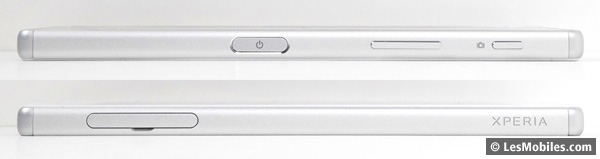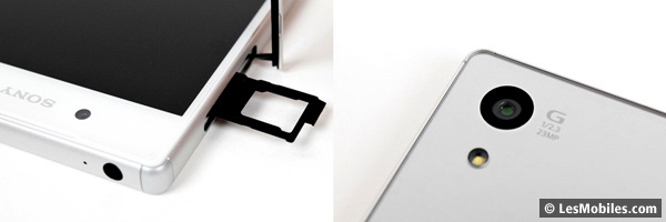 Contrairement au Xperia Z5 Compact, qui a abandonné son châssis en verre renforcé et en métal pour une robe en polycarbonate et en verre dépoli, le Xperia Z5 a conservé de l'aluminium pour ses tranches, tout en adoptant le verre dépoli pour la face arrière. Toujours aussi droit et rectangulaire, le Xperia Z5 adopte ici le design Omnibalance étanche observé avec le petit smartphone haut de gamme : des tranches moins convexes, des éléments qui ont été déplacés et l'arrivée d'un nouveau bouton pour la mise en marche qui cache le lecteur d'empreinte digitale. Un bouton rectangulaire aux côtés latéraux arrondis qui répond bien au cache unique où se trouvent les emplacements de la carte nano SIM et de la carte microSD.