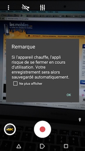 Nous en venons aux performances. Car malgré la présence de ces nombreux partenaires marketing qui grèvent la mémoire du téléphone, l'ensemble reste extrêmement fluide. Commençons d'ailleurs par une première bonne nouvelle : le Xperia Z5 ne surchauffe pas. Ou plutôt, il excelle dans la dissipation de la chaleur émise par les composants (que ce soit le chipset ou l'amplificateur de réseau). Nous avons filmé en 4K pendant une demi-heure (toujours avec le message d'avertissement en préambule) et le smartphone continuait de filmer (avec la mémoire pleine à 75%).