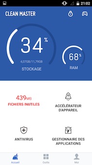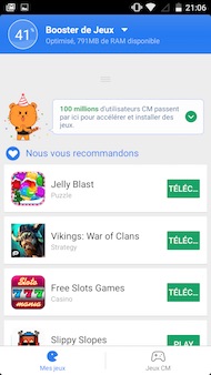 Des recommandations dans le booster de jeu de Clean Master