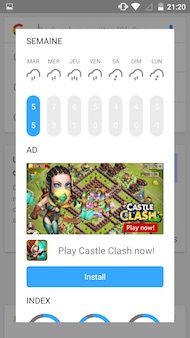 Touchpal X avec une publicité dans son application météo
