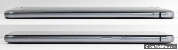 Nous y voyons cependant quelques différences. À l'arrière notamment, le châssis unibody recouvrant les tranches pour les protéger cède sa place à une coque en trois parties. Celle au centre est métallique tandis que les deux extrémités haute et basse sont en plastique. Les quatre contours, désolidarisés de la coque métallique, sont également en aluminium. Ils sont séparés par des joints en polycarbonates pour les isoler les uns des autres lors de la prise en main et éviter l'antennagate. Pour être honnêtes, nous lui préférons le design du S6.