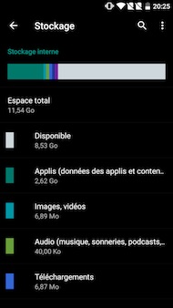 Le poids du système d'exploitation semble léger. Et dans les faits, c'est en partie vrai. Sur les 2,63 Go qui sont monopolisés par le système d'exploitation et les applications, environ 1054 Mo le sont par nos applications de tests (AnTuTu, 3DMark, Basemark, Geekbench et Dead Trigger 2). Cependant, si vous regardez l'espace pris par le système sur la mémoire vive (la RAM), vous constaterez qu?Android monopolise 730 Mo. Soit un quart de la RAM disponible. Il en reste bien évidemment assez pour jouer. Mais prenez garde aux applications qui tournent en arrière-plan, comme Facebook.