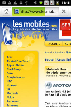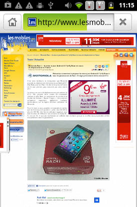 Côté surf, c'est aussi du tout bon, avec des temps de chargement mesurés sur le navigateur par défaut n'excédant pas les 3 ou 4 secondes selon les sites. Même si l?écran n'est pas très confortable pour la lecture d'article, vous ne devriez pas être gênés dans votre navigation par des aspects techniques : c'est encore une fois tout bon. De même, le GPS est tout à fait correct avec une fixation sur votre position en moins de 5 secondes, testé même à l'intérieur de la rédac, pour une précision à 30 mètres. Vraiment, tout cela est impressionnant et nous étions les premiers à douter de ce smartphone au déballage : comme quoi, les caractéristiques techniques ne sont pas forcément toujours révélatrices des performances pratiques d'un smartphone.