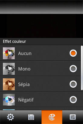 Reste qu'il y a tout de même quelques effets pré-installés qui pourront vous permettre de recouvrir d'un filtre les clichés un peu trop fades : sépia, négatif, bleu, vert ou noir et blanc. Il est possible également, même sans Android 4.0, de faire des panoramas, signe qu?Acer a tout de même un petit peu modifié la ROM d'origine. Encore une fois, c'est peu, mais nous ne sommes clairement pas en présence d'un « photophone ». Avantage des clichés en basse qualité : vous pourrez les envoyer par MMS sans presque avoir besoin de les redimensionner. Et avec seulement 4 Go de stockage, en résolution maximale, le smartphone peut stocker? un peu plus de 8000 photos.
