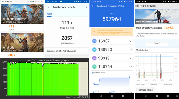 Comme tous les autres mobiles que nous avons pu tester, nous l’avons soumis à plusieurs outils de mesure de performances dont voici les principaux résultats. Notez que le chipset propose toujours un maximum de performances, dans le temps.