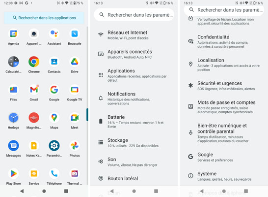 La luminosité est adaptative, selon les conditions d’éclairage ambiant. Il n’y a aucune option pour changer le mode d’image. Il faut donc faire avec les réglages imposés par le fabricant. Bref, vous l’avez compris, les paramètres relatifs à l’écran sont moins nombreux que sur les autres mobiles.