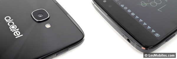 À l'arrière en revanche, Alcatel a dû abandonner la coque en polycarbonate avec effet brossé et a adopté le design de l'avant de l'appareil. Ainsi, le châssis métallique dépasse en haut et en bas de la même façon, dévoilant deux autres grilles de haut-parleur. Le capteur photo a été déplacé pour se positionner sur la ligne médiane, au-dessus de la nouvelle identité visuelle d'Alcatel. Deux petites remarques à propos du dos du smartphone. D'abord, les positions des logos « Idol » et « Alcatel » ont été inversées entre l'Idol 3 et l'Idol 4S, laissant entendre qu?Alcatel souhaite porter plus en avant sa marque.