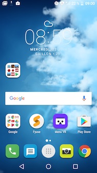 Vous remarquerez aussi quelques changements d'organisation des icônes : les applications multimédias ont été placées sur le second tableau (avec les partenariats marketing) et sont remplacées, en premier tableau à côté du dossier Google et du Play Store, par une application de réalité virtuelle (puisque le mobile est vendu avec un casque) et Fyuse, une application photographique amusante. Les raccourcis sur l?écran de verrouillage sont toujours présents. Ils sont évidemment paramétrables.