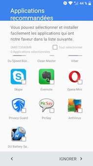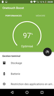 Comme toujours avec Alcatel, l'Idol 4S est livré avec beaucoup d'applications système modifiées et des logiciels additionnels. Nous avons relevé OneTouch Music, OneTouch Boost (optimisation du système), OneTouch Apps (ersatz de Samsung Apps), etc. Nous avons également noté la présence de quelques partenaires commerciaux comme Twitter, Facebook, GameLoft, Instagram, Tizr Lifecasting, AVG Antivirus, etc. Alcatel ne semble pas encore avoir pris le parti pris de Samsung ou de Sony de limiter le nombre d'applications préinstallées.