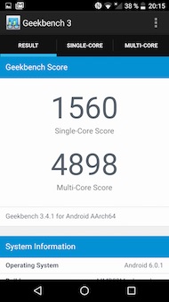 Sur Geekbench, cette configuration rappelle que le Snapdragon 652, malgré les apparences, reste un chipset, certes capable, mais positionné milieu de gamme. Côté graphisme, le constat est similaire : de belles performances, malgré un chipset milieu de gamme et un écran à la très bonne définition : 17764 points sur Ice Storm Unlimited, 1350 points sur Slingshot ES 3.0 et 23718 points sur Basemark X (qualité médium). Ces performances nous rappellent les meilleures heures du Snapdragon 801 (avec le Zuk Z1). Une comparaison flatteuse (aussi bien pour l'un que pour l'autre des partis).