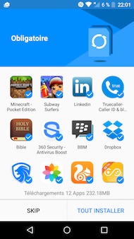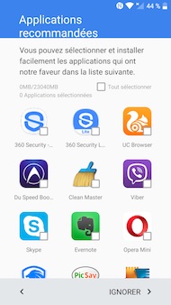 Cependant, il y a un signe « encourageant » : certains partenaires ont été positionnés dans une liste facultative que les utilisateurs peuvent choisir à leur convenance. Cette douzaine d'applications est constituée notamment de navigateurs Web, de suites de sécurité, d'outils d'optimisation et d'utilitaires bureautiques. Ce « signe encourageant » est cependant contrebalancé par le fait qu?Alcatel propose d'installer ces applications pendant la phase d'initialisation du mobile et non après en avoir fait connaissance.