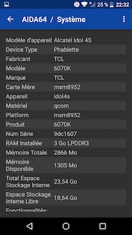 Si vous ne tombez pas dans ce « piège » marketing (même si certains outils sont des standards), le système d'exploitation reste toutefois assez conséquent puisque la ROM Alcatel pèse 8,46 Go sur les 32 Go prévus à l'origine. Heureusement qu?Alcatel a choisi d?être un peu plus généreux que les années précédentes sur la série Idol. Sur les 3 Go de mémoire vive, le système en monopolise en moyenne 62 %, mais cela peut évidemment être plus (comme cela peut parfois être un peu moins). L'autonomie, quant à elle, reste bonne, puisque le mobile parvient à dépasser la journée d'utilisation sans grande difficulté.
