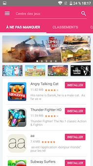 Nous avons remarqué, comme sur les Idol et les Pop récents, que la phase de démarrage du téléphone comporte toujours une étape pour les applications marketing. Durant cette étape, le mobile vous propose de télécharger une poignée d'applications (très ?) facultatives que vous pourrez toujours vous procurer par la suite, que ce soit grâce au Play Store ou via l'application marketing d'Alcatel « Apps » ou le « Centre de jeux ».