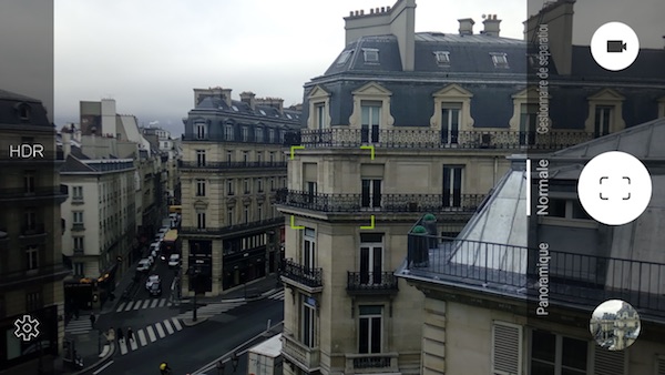 Nous avons réalisé plusieurs clichés et vous présentons ici le meilleur. Il a été fait avec le mode HDR, ce qui explique pourquoi les voitures se dédoublent dans la rue : elles ont bougé entre la première et la seconde prise de vue. Avec le mode HDR activé, nous disposons d'un cliché assez lumineux et plutôt bien équilibré. Mais le résultat est flou et du grain apparaît dès que vous zoomez un tant soit peu. Sans le mode HDR, les photos gagnent en netteté. Mais c'est au détriment de la luminosité, du contraste et de l?équilibre : les photos sont très sombres et les zones illuminées brûlent la photo. Notez également des couleurs un peu fades. Peu mieux faire ici.