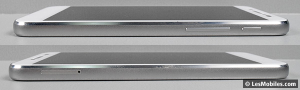 Toujours du côté des détails, nous remarquons les séparations pour les antennes placées sur tranches inférieures et supérieures, laissant les tranches latérales dépouillées. Sur ces dernières se trouvent, à droite, les boutons mécaniques et, à gauche, le tiroir pour les deux SIM et la carte mémoire. Nous remarquons ici qu?Alcatel n'a pas opté pour le même niveau de détail que sur la gamme Idol. À l'arrière du téléphone, nous retrouvons le lecteur d'empreinte digitale (dommage que TCL n'ait pas conservé l'emplacement en façade du X1) et le capteur photo coincé dans un coin, avec son flash double LED.