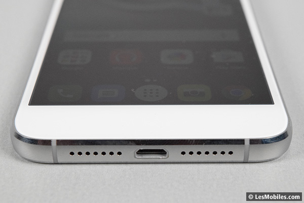 L'emplacement des différents éléments technique est très classique avec le port jack 3,5 mm sur la tranche du haut et le port microUSB sur la tranche du bas, flanqué du haut-parleur mono et du microphone. Sous l?écran se trouve un pavé tactile avec les trois touches de navigation d'Android. Ces touches sont rétroéclairées. Le flash frontal ne se trouve pas à côté de la webcam, mais de l'autre côté de l?écouteur téléphonique. La prise en main est qualitative, même si elle est un peu fuyante à cause du verre et même si le Shine Lite est très légèrement lourd.