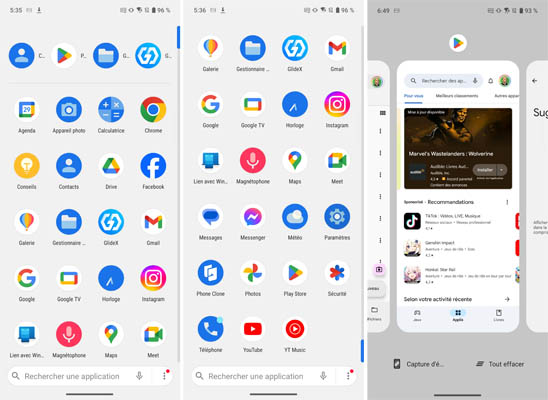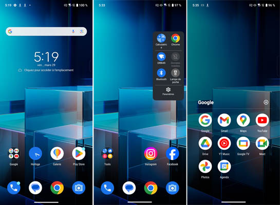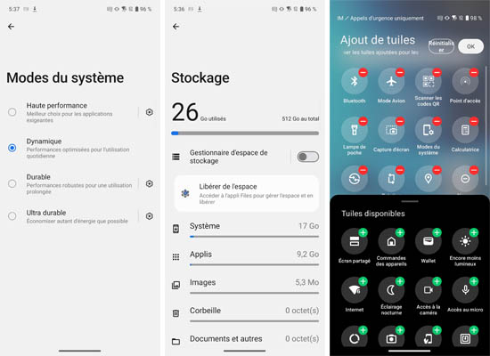 Le smartphone est livré avec les applications Google préinstallées donc quasiment comme les mobiles Google. Parmi les applications tierces, il y a seulement Facebook et Instagram. Malgré cela, le système occupe 26 Go d’espace de stockage interne sur les 512 disponibles théoriquement sur notre modèle de test. C’est plutôt raisonnable et cela laisse suffisamment de place aux documents, photos et vidéo, par exemple.