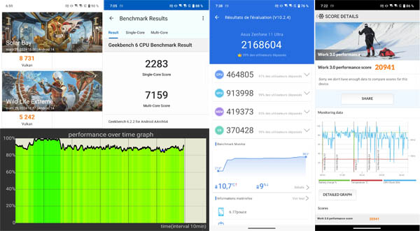 Afin de comparer ses performances aux autres téléphones que nous avons pu tester, nous avons soumis le Zenfone 11 Ultra à différents outils de mesures dont voici les principaux résultats.