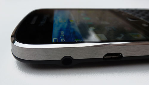 Le flanc gauche de l'appareil ne comporte que des connectiques pour le chargeur microUSB et le casque stéréo (jack 3.5 mm). Nous aurions d'ailleurs préféré que cet emplacement soit situé en haut ou bas du téléphone. En l?état, ce n'est pas très pratique lorsqu'un casque est connecté et que le smartphone est rangé dans une poche.