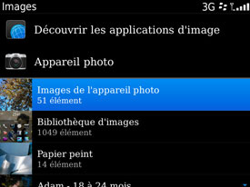 Enfin, la visionneuse de photo est elle aussi d'un classicisme à tout épreuve. C'est la même que celle qui existait déjà dans BlackBerry OS6. Elle propose une vue en grille ou en liste, et dispose d'un diaporama.