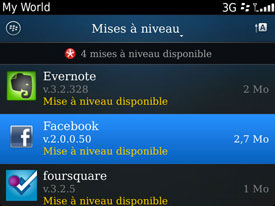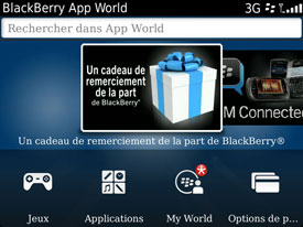 La boutique d'applications en ligne de BlackBerry n'est pas la plus riche qui soit, loin de là même. Néanmoins, elle propose tout de même la plupart des applications pratiques que l'on retrouve sur les autres plateformes (SNFC Direct, PagesJaunes, etc.). RIM l'a récemment mise à jour, rendant la navigation beaucoup plus agréable au demeurant.