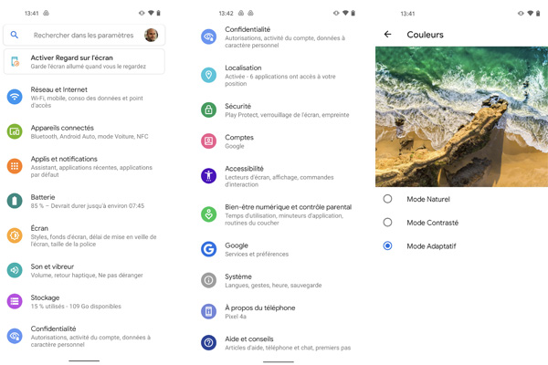 L?écran du Pixel 4a mesure 5,81 pouces en diagonale. Il est de très bonne facture. Il offre une définition confortable de 1080 x 2340 pixels et avec une telle dimension, la lisibilité est tout à fait remarquable. Merci la dalle OLED qui permet d'offrir de très belles couleurs et un excellent niveau de noirs. L?écran est parfaitement lisible en plein soleil et offre, globalement une bonne colorimétrie.