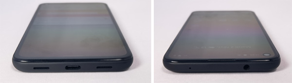 Le bouton d'alimentation est blanc alors que le reste du mobile est noir. Pour le reste, on remarque la présence d'un port audio jack 3,5 mm pour y brancher un casque. Il y a également une prise USB-C sur le profil inférieur du mobile. Il est encadré par deux haut-parleurs.