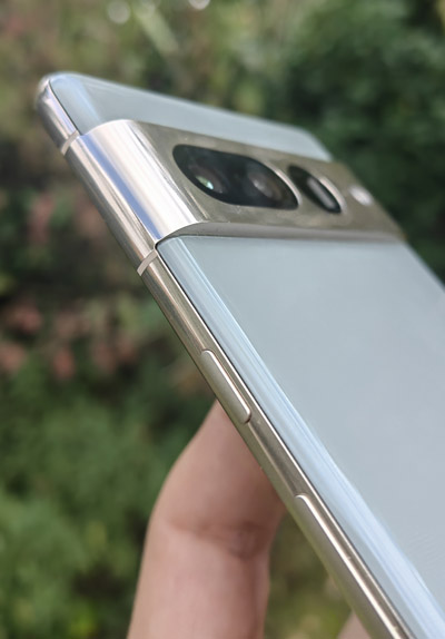 La bande qui contient tous les capteurs photo et qui occupe toute la largeur de l’appareil à l’arrière est plus qualitative sur le Pixel 7 Pro avec de l’aluminium et une forme plus épurée, conférant au mobile une certaine classe. Les bords de l’appareil profitent également d’une meilleure finition que précédemment. Il n’y a pas de rebord sur la bande alors que c’était le cas sur le Pixel 6 Pro.