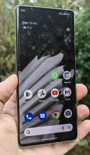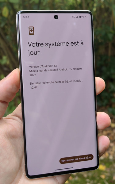 Le smartphone Google Pixel 7 Pro, comme le Pixel 7 embarque le nouveau processeur Google Tensor G2 fabriqué par Samsung. Profitant d’une gravure en 4 nm, cette puce est optimisée afin de proposer de bonnes performances, mais surtout des améliorations significatives au niveau des fonctions photo, par exemple. Notez aussi au passage qu’elle intègre la puce de sécurité Titan M2 qui permet de garantir la confidentialité des données enregistrées au sein du téléphone. À l’usage, le chipset intégré dans le Pixel 7 Pro sait se montrer performant pour offrir une parfaite fluidité au sein de l’interface. Les applications se lancent très rapidement et on navigue avec une grande vélocité dans les différents menus. La partie gaming semble aussi très bien servie. Rappelons que le Pixel 7, mais aussi le Pixel 7 Pro sont animés par le système Android version 13. Les mises à jour de sécurité datent du 5 octobre 2022. Difficile de faire plus à jour.