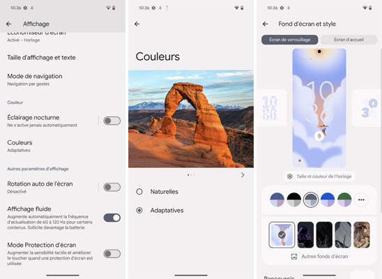 L’écran permet d’avoir un affichage fluide avec une fréquence de rafraîchissement variable de manière automatique entre 60 et 120 Hz contre une variation possible entre 1 et 120 Hz pour la version Pro. Celle-ci est donc plus apte à proposer une économie d’énergie, le cas échéant. C’est toutefois mieux que son prédécesseur dont la fréquence maximale était de 90 Hz. Bien entendu, la luminosité peut être adaptative. Elle est moins intense que sur le Pixel 8 Pro (2400 cd/m²) puisque Google annonce un pic de luminosité à 2000 cd/m², ce qui est très élevé. C’est autant que l’écran de l’iPhone 15 qui utilise une dalle de 6,1 pouces, comme le Galaxy S23 avec une luminosité maximale légèrement moindre. À l’usage, comme sur le Pixel 8 Pro, on a droit à un écran suffisamment lumineux en intérieur comme en extérieur. Il peut également proposer un affichage tout à fait correct dans la pénombre. Dans les paramètres, il est possible de choisir entre des couleurs naturelles ou adaptatives. Les deux réglages rendent un affichage tout à fait satisfaisant. Notez également le support du format HDR10+ pour certaines plateformes de streaming qui le propose. L’écran s’avère d’une impressionnante qualité dans tous les environnements et proposent des contrastes particulièrement profonds avec de belles couleurs ainsi qu’une parfaite lisibilité. Notez que l’écran profite de la technologie Corning Gorilla Glass Victus, un niveau en dessous de la version Pro, lui assurant tout de même l’une des plus hautes résistances aux rayures ainsi qu’aux chocs actuellement disponibles.