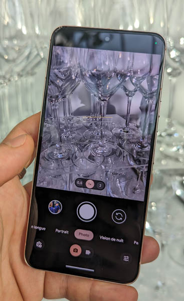 Google mise beaucoup sur les capacités photo de ses nouveaux appareils. Pour cela, le Pixel 8 Pro est doté d’un capteur principal de 50 mégapixels stabilisé optiquement avec un capteur de 48 mégapixels pour gérer les prises de vue en mode ultra grand-angle et les photos en mode macro. Rappelons que le Pixel 7 Pro embarque un capteur de 12 mégapixels pour faire le même job. Ajoutez à cela un téléobjectif de 48 mégapixels offrant un zoom optique 3,2x. La caméra à selfie est un module de 10,5 mégapixels. On connait les qualités de traitement d’image de Google et ce modèle devrait en profiter. Il nous faut des tests plus poussés pour estimer les résultats. L'interface a été repensé avec les fonctions Photo et Vidéo disponible en bas de l'écran. Des options sont disponibles à gauche et à droite, en fonction du mode de prise de vue sélectionné.