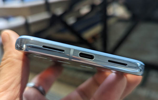Enfin, sur la tranche inférieure, il y a le connecteur USB-C avec deux haut-parleurs.