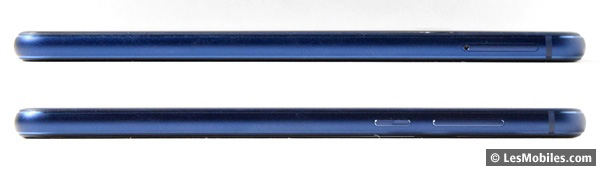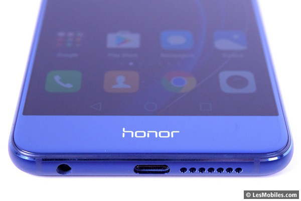 Nous apprécions particulièrement le souci du détail dont a fait preuve Honor. L'assemblage est précis mais vous remarquerez surtout ci-dessus les deux lignes qui dévient les reflets à l'arrière pour apporter différentes nuances. Soulignons également que le bloc photo est parfaitement intégré sous la vitre. Seul le flash a droit à une ouverture, en plus du lecteur d'empreinte bien sûr. La surface est autrement entièrement lisse. D'où les glissades lorsque le smartphone est posé sur un plan même à peine pentu. L'adhérence est en revanche au rendez-vous au contact de la main pour une prise assurée, que l'on doit aussi en partie à des dimensions raisonnables.