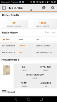Le Honor 8 ne se contente évidemment pas de faire tourner Android comme un charme. Il s'en sort également très bien dans les usages plus spécifiques liés au multimédia même si ce n'est pas le smartphone le plus puissant du marché, comme le montrent les scores obtenus sur les benchmarks. Il arrive plus ou moins au même niveau que le Pro 6 de Meizu sous HelioX 25 sur les tests du CPU comme du GPU mais assez loin derrière les plateformes sous Snapdragon 820 et Exynos 8890. L'écart est toutefois bien moins évident à l'usage.