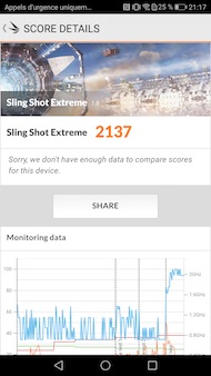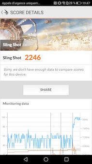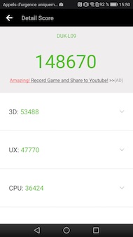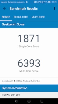 Enfin, l'autonomie du smartphone est au-dessus de la moyenne : sans être aussi bonne que celle du Mate 9 (grâce à l?écran Full HD), elle dépasse largement la journée d'utilisation grâce à une batterie de 4000 mAh associée à un chipset qui sait quand il doit ne pas être trop gourmand et quand il peut « lâcher les chevaux » ! Transition parfaite pour évoquer le Kirin 960, associé donc ici à un écran QHD et 6 Go de RAM. Nous allons certainement encore susciter des commentaires polémiques sur les résultats que nous avons obtenus avec les benchmarks usuels. Mais voici nos chiffres : 14670 points sur AnTuTu, 2952 points sur Basemark OS II, 1871 et 6393 points sur Geekbench (respectivement en single core et en multi core) et 28620 points sur 3DMark (Ice Storm Unlimited). Retrouvez d'autres résultats dans les captures d?écran ci-contre.