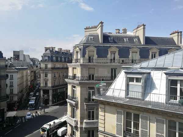 Concrètement, les images sont globalement lumineuses et très équilibrées, puisqu'il n'y a que très peu de zones d'ombres (outre celle en bas à gauche). Nous avons profité d'une accalmie au-dessus de Paris pour réaliser la photo ci-contre : les quelques nuages sont bien dessinés, les voitures et les Vélib? en contrebas sont visibles. Capteurs 12 mégapixels oblige, des pixels apparaissent relativement rapidement en zoomant. En outre, nous regrettons que l'apport massif de luminosité (par la fusion des deux capteurs) baisse considérablement le contraste (avec un effet voilé). Les couleurs sont donc un peu délavées.