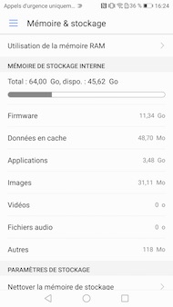 Et ce ne sera pas du luxe. Car, même si le smartphone est doté de 64 Go de stockage, la ROM EMUI 5.1 en monopolise 11 Go. Il reste alors moins de 50 Go de stockage disponible pour l'utilisateur. Un chiffre comparable au Mate 9, ce qui est très logique puisque la phablette fonctionne sur une version d'EMUI presque identique. Mais ce poids est bien plus élevé que la concurrence : la ROM Oxygen de OnePlus, présente dans le OnePlus 3T, pèse environ cinq fois moins lourd et la ROM Touchwiz, basée sur Android Marshmallow, pèse moins de 7 Go (comme dans le Samsung Galaxy A3 (2017), par exemple). Côté RAM, EMUI 5.1 demande 2 Go en moyenne pour fonctionner. Heureusement, il y en quatre de plus pour les autres applications.