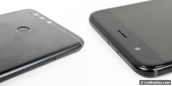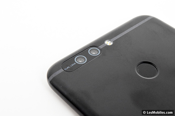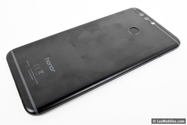 Vous remarquerez cependant une différence visuelle avec les modèles cités précédemment : les séparations pour les antennes ne sont cachées ni derrière une partie en verre, ni le long des tranches. Elles sont horizontales. Elles sont visibles. Et elles séparent la coque en trois parties, comme un iPhone 6 Plus. La séparation supérieure sert en outre d'alignement pour tous les éléments photographiques : les deux capteurs, l'autofocus laser et le flash. Sous cette ligne, là où se trouve habituellement les capteurs photo du Mate 9, se trouve le lecteur d'empreinte digitale à activer avec l'index. Nous préférons les lecteurs en façade. D'autant que celui-ci est n'est facilement accessible qu?à ceux qui ont de longs doigts.
