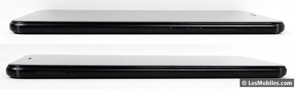 Les tranches sont relativement sobres pour un modèle haut de gamme, notamment quand nous comparons avec celles du Galaxy S7 par exemple. Ici, la simplicité prime. Une simplicité qui se retrouve aussi avec le placement des éléments techniques : mise en marche et volume à droite, tiroir SIM et microSD à gauche, micro principal, USB type-C, haut-parleur et jack 3,5 mm en bas, infrarouge et microsecondaire en haut. La construction est qualitative (avec un tout petit peu de jeu entre la dalle de verre Gorilla et le châssis métallique sur notre unité de test). Et la prise en main classique.