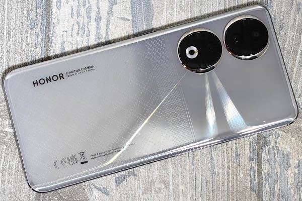 Malgré son positionnement sur le segment du milieu de gamme, le smartphone Honor 90 propose un design qui est clairement digne des plus haut de gamme. En effet, l’appareil dispose des profils extrêmement fins qui sont arrondis juste ce qu’il faut afin d’offrir une excellente prise en main. En façade, c’est grâce à son écran qui a les 4 côtés incurvés et au dos, la partie arrière revient légèrement sur les profils. Cela permet d’obtenir une épaisseur de seulement 7,8 mm, ce qui en fait l’un des plus fins du marché. Le châssis est en plastique, mais chromé ce qui lui confère une impression de métal, du plus bel effet. Le Honor 90 est décliné en vert, noir ou « diamond silver ». Cette dernière finition est clairement la plus belle, mais exclusivement disponible sur le site de la marque. C’est celle-ci que nous avons pu tester.