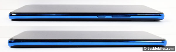 Continuons avec l'aspect ergonomique du téléphone en signalant que l?écran est très impressionnant au premier abord. Nous constatons ensuite que les bordures sont tout de même assez larges. Mais grâce à cette large surface tactile, ce n'est pas gênant. Les éléments techniques sur les tranches sont positionnés de façon très classique, avec le port USB en bas, entouré du port jack, du micro et du haut-parleur, la mise en marche et le volume à droite, le tiroir des SIM en haut, avec le micro secondaire et le tiroir motorisé de la webcam.