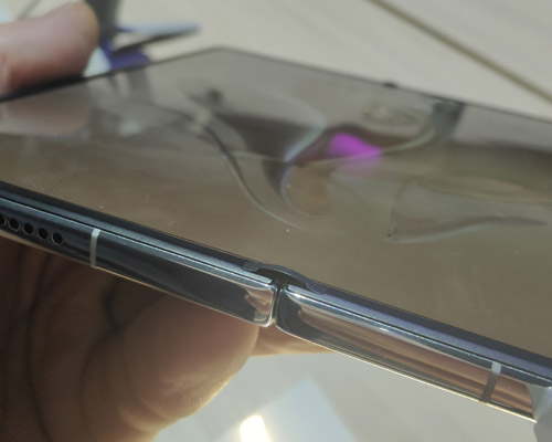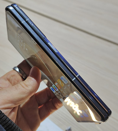 Lorsque le smartphone est totalement ouvert, on ne voit pas la pliure, comme sur le Oppo Find N. Au passage de doigts à cet endroit, on ne la sent quasiment pas non plus. C'est très appréciable et à titre de comparaison sur le Samsung Galaxy Z Fold3, on voit et on sent la pliure. Ce résultat a pu être obtenu en utilisant le principe d'un pliage en forme de goutte d'eau au niveau de la charnière, ce qui permet de moins pincer l?écran flexible et ainsi éviter le marquage de la surface d'affichage.