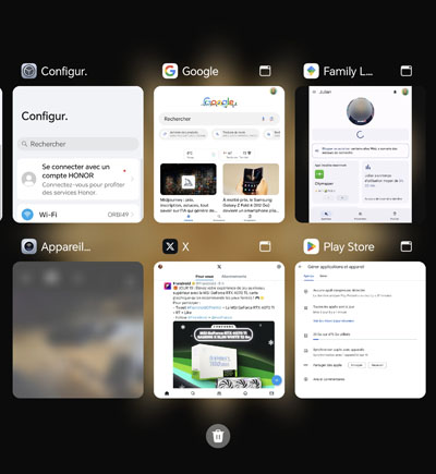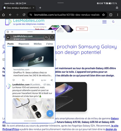 Notez qu’il est possible d’afficher certaines applications en surimpression par rapport aux autres pour faire du multifenêtre, le cas échéant. C’est très pratique. Pour ce faire, on passe par le gestionnaire multitâche et on appuie sur la petite icône présente dans le coin supérieur droit des vignettes représentant les applications. Sinon, on peut également partager l’écran pour afficher, sur un volet, une application et sur l’autre volet, une deuxième application. Cela permet, par exemple, de consulter ses e-mails et de regarder un autre contenu, juste à côté. C’est très pratique.