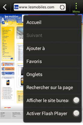 Cependant, tout n'est pas parfait. Malgré le processeur d'un autre temps, HTC a tout de même jugé bon d'intégrer la technologie Flash dans le smartphone que nous testons ici. Nous vous conseillons vivement de la désactiver si vous voulez naviguer en toute quiétude sur ce smartphone. Elle se montre en effet gourmande en ressources et à tendance à méchamment ralentir le temps d'affichage des pages, ainsi que la fluidité de la navigation. D'ailleurs, puisque nous avons ouvert la rubrique « conseils », sachez qu'à notre humble avis, l'utilisation du navigateur Chrome de Google est nettement plus recommandée sur un smartphone comme le Desire C. D'une part, il est incompatible avec le Flash, et d'autre part, il gère un peu mieux les onglets que le navigateur natif. Sans parler de la synchronisation possible avec les versions ordinateurs et tablettes de Chrome.