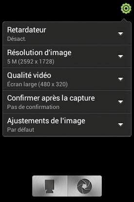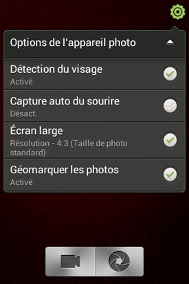 On remarque que si globalement, l'interface utilisateur est très proche de celle du One V, celle de la fonction photo se révèle plus dépouillée. On trouve quand même quelques filtres qu'il est possible d'appliquer en temps réel, ainsi que les réglages basiques habituels.